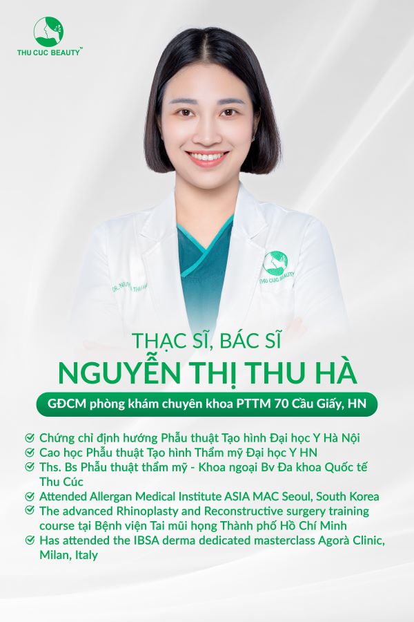 Thạc sĩ, Bác sĩ Nguyễn Thị Thu Hà một trong những chuyên gia hàng đầu về lĩnh vực phẫu thuật thẩm mỹ. Trong sự nghiệp của mình, Bác sĩ Nguyễn Thị Thu Hà từng giữ nhiều vị trí về lĩnh vực thẩm mỹ tại các bệnh viện thẩm mỹ nổi tiếng khác nhau, phẫu thuật hàng nghìn ca và đem lại sự tự tin ở không chỉ phái đẹp mà còn cả cánh mày râu.